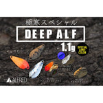 20mmのレングスで1.1g。小粒ながらよく潜り沈下も早くスローでも停止しない、厳寒期特にお勧めしたいALFスプーンのDEEP ALF1.1g。