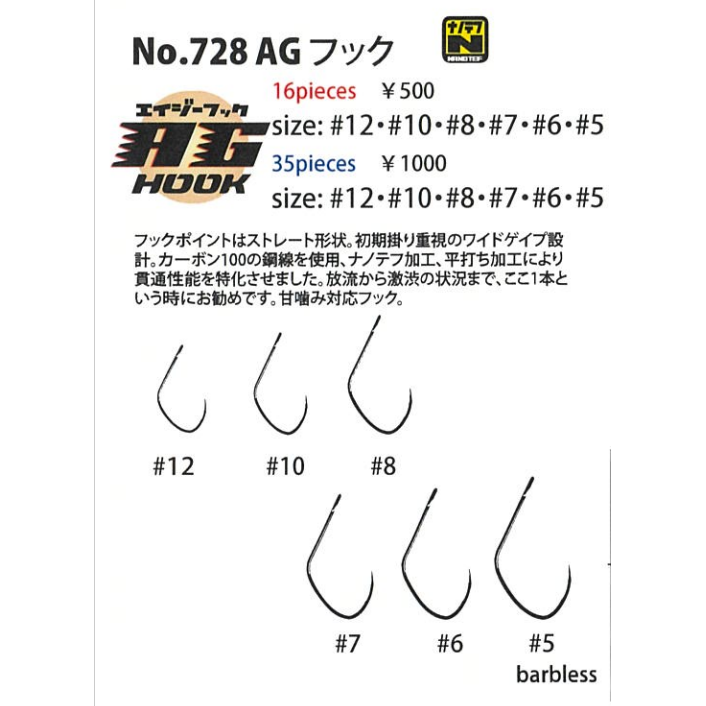 基本のフックではないです。しかし昨今の食べる瞬間だけ早く加える時間の短い魚にはオススメです。