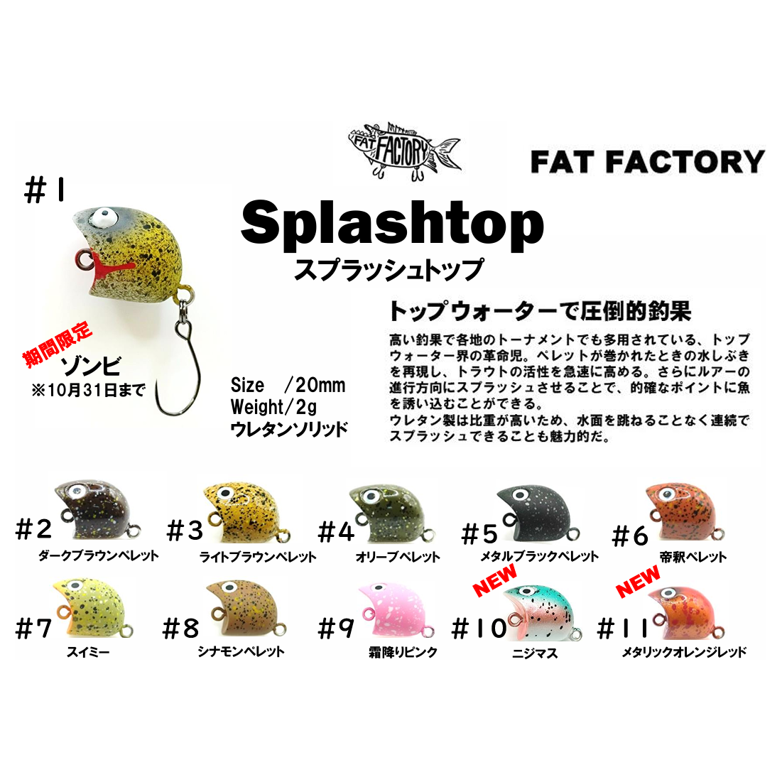 高い釣果で各地のトーナメントでも多用されている、トップウォーター界の革命児。ペレットが撒かれた時の水しぶきを再現し、トラウトの活性を急速に高める。ルアーの進行方向にスプラッシュさせることで、的確なポイントに魚を誘い込むことが出来る。