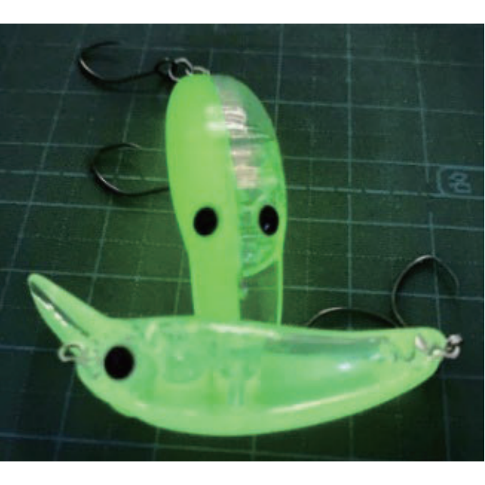 ブランク樹脂自体にグローパウダーを練り込む事によりボディー全体に強い蓄光力をまとう樹脂成型が誕生しました。