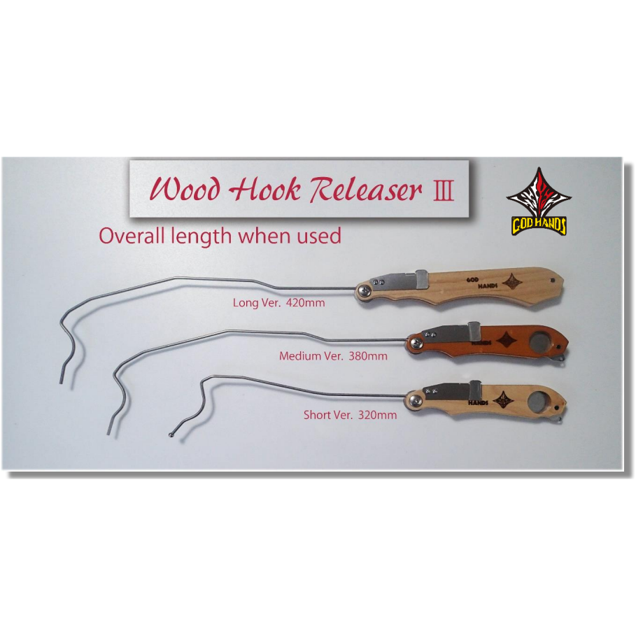 GOD HANDS 三代目となるウッドリリーサーが完成! ショートバージョンからロングバージョンまで3つの長さから選べます。 ステンレスアームのロック方法も大きく変更され、 使いやすさと強度がアップされています。