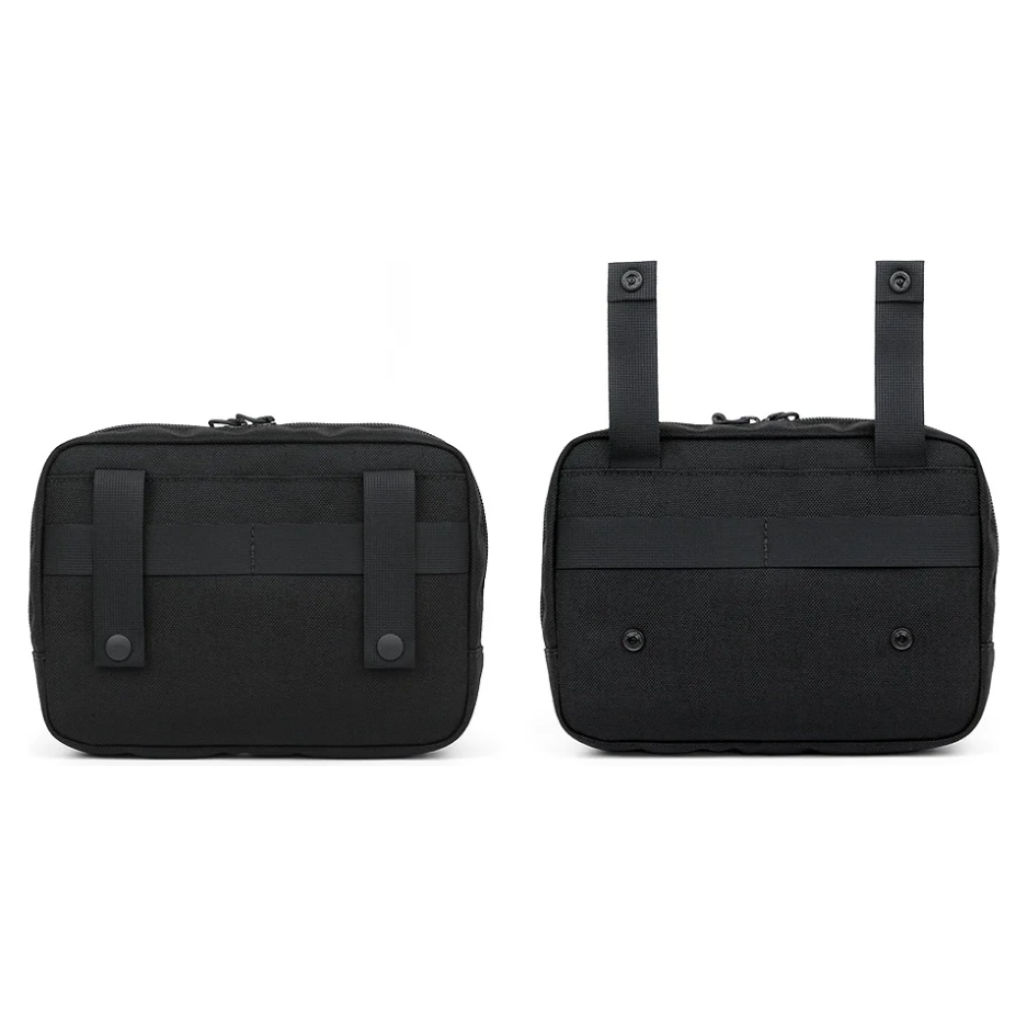 フロント面のダブルレールテープ(25㎜幅)にポーチなど必要なアクセサリーを取り付けることで、単体でも機能性を向上させたセットにカスタマイズすることもできます。