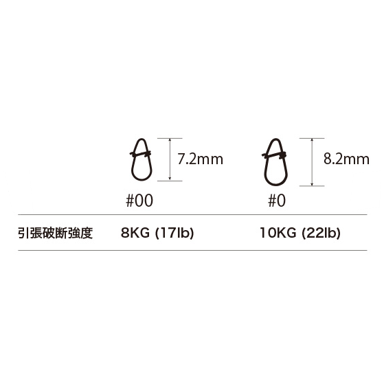 ボトム部分の形状を広く設計することにより、閉開のしやすさ、ルアーアイへの通しやすさを実現!極細高弾性素材を使用し、エンドを巻き付け処理にすることで、頻繁なルアー交換でもへたりや変形しにくい耐久性!ワイド形状とすることで、ルアーアクションも最大限発揮!!